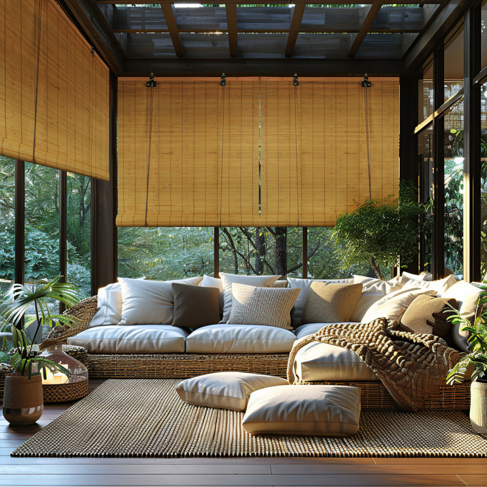 Vracia sa teplo a hĺbka – orech, tmavý dub, textúrované tkaniny. K nim sa ideálne hodia bambusové rolety. Bambus má prirodzený "filter svetla": slnko cezeň preniká mäkšie, miestnosť nepôsobí zatiahnuto, ale ani preexponovane. A bonus? Vyzerá skvelo v modernom aj tradičnom interiéri – pri svetlých stenách vytvorí kontrast, pri tmavších tónoch miestnosť zjednotí.