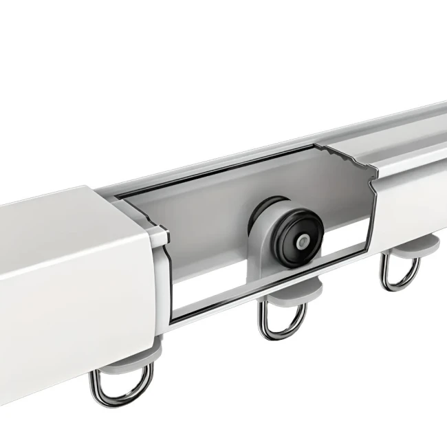 - Posúvače s valčekmi a kovovými háčikmi - zaručujú plynulé posúvanie záclon a závesov