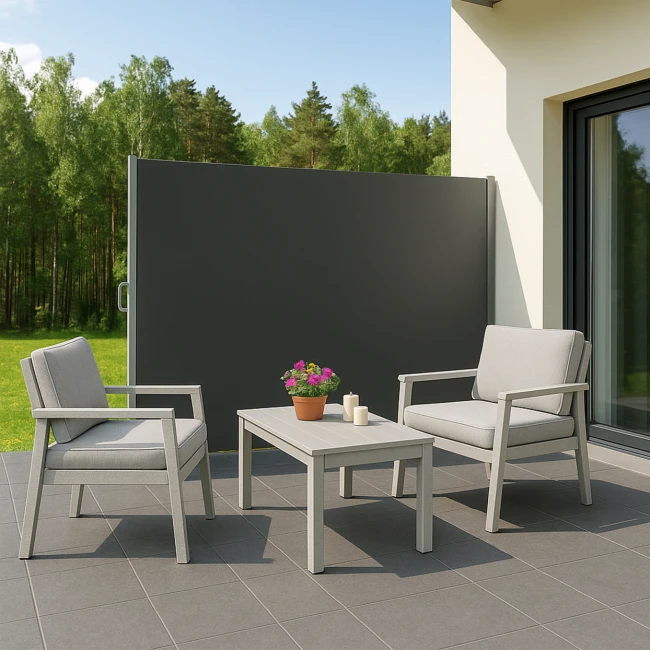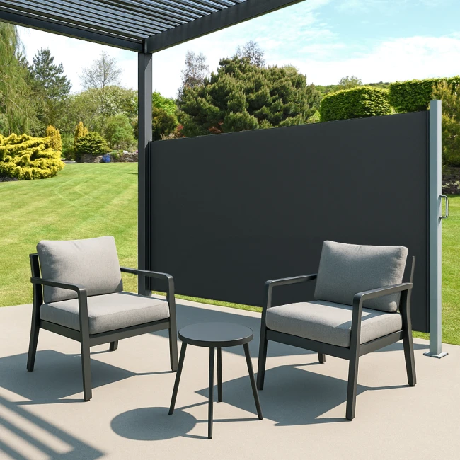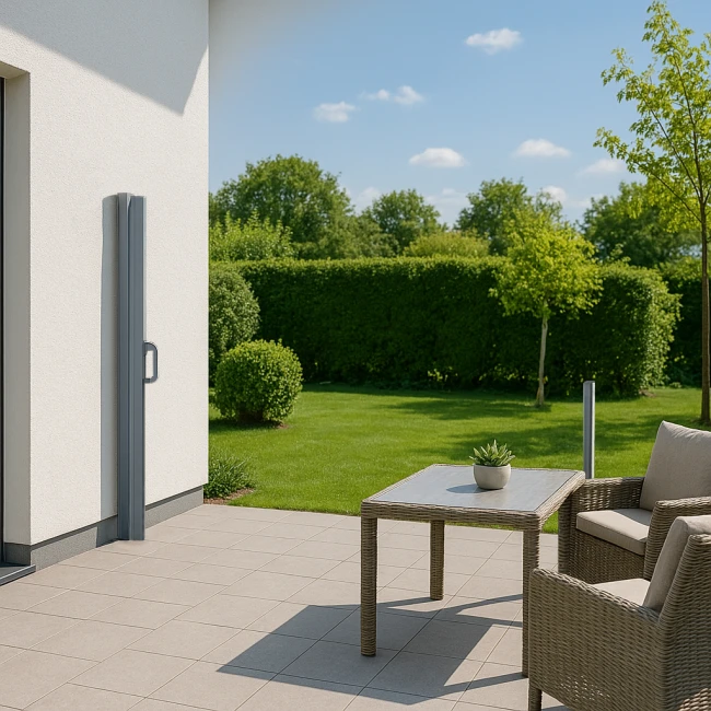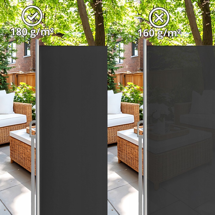 - Odolnosť voči poveternostným vplyvom – Bočná markíza vyrobená z vysoko kvalitných materiálov, ktoré poskytujú ochranu pred UV žiarením, dažďom a vetrom.