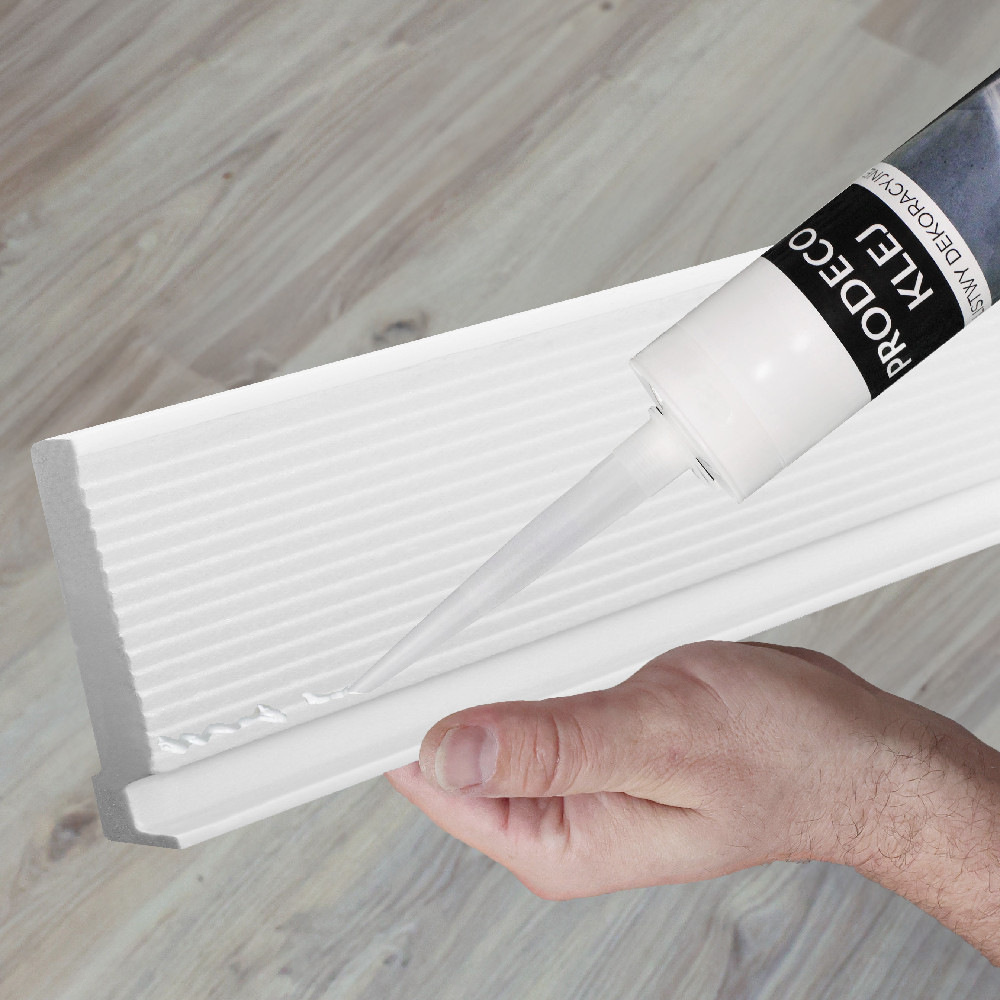 Na inštaláciu lišty odporúčame lepidlo na lištu PRODECO GLUE. Vďaka nemu bude inštalácia rýchla, jednoduchá a odolná.