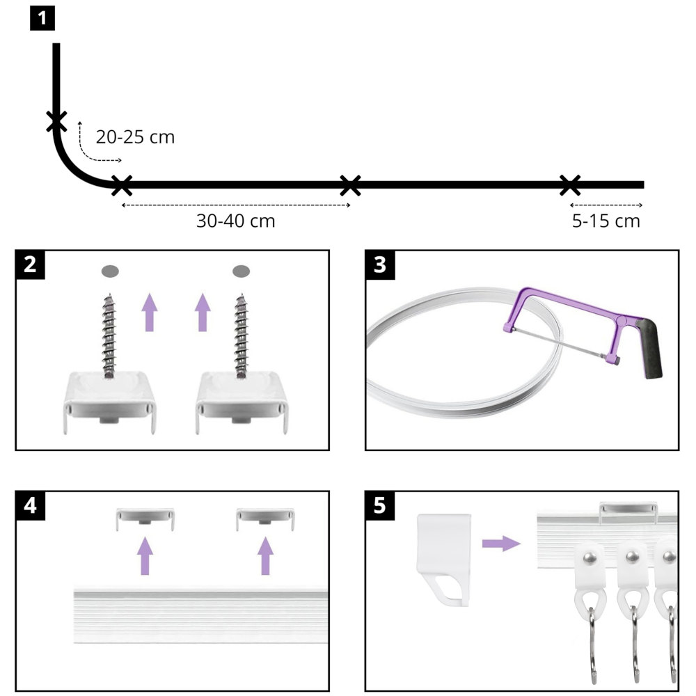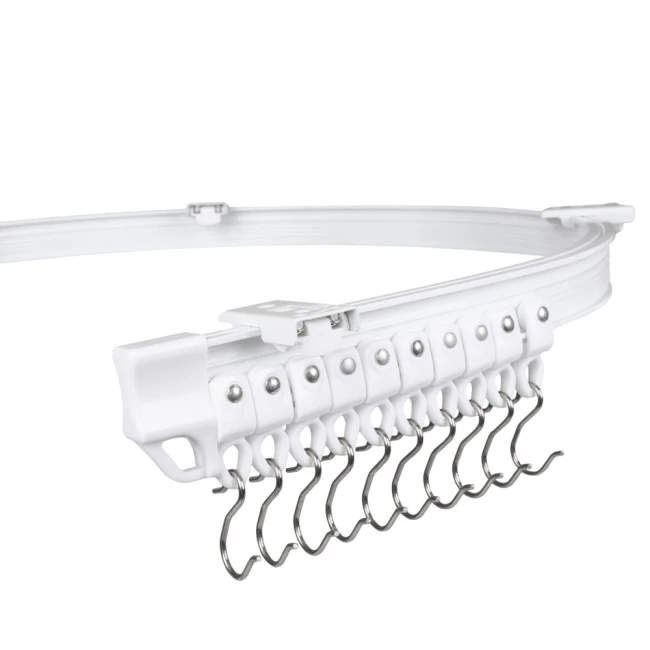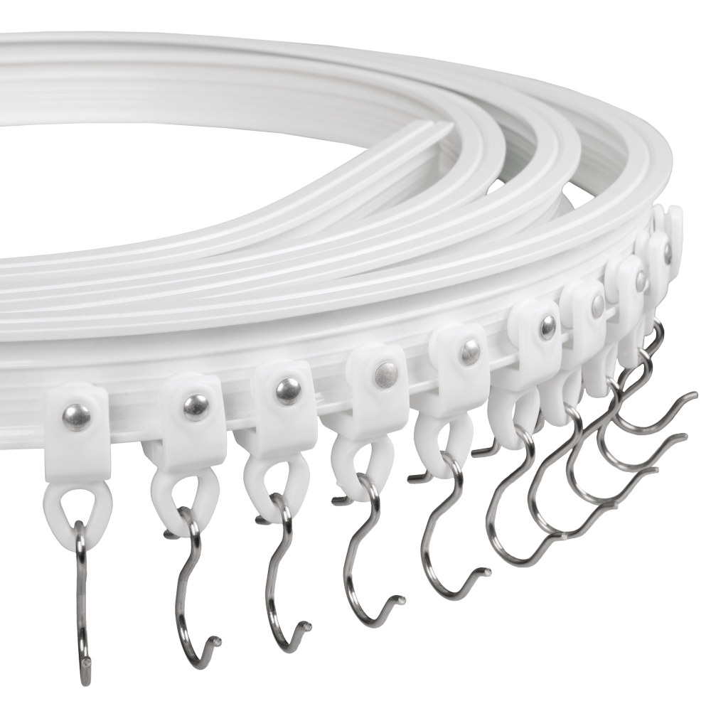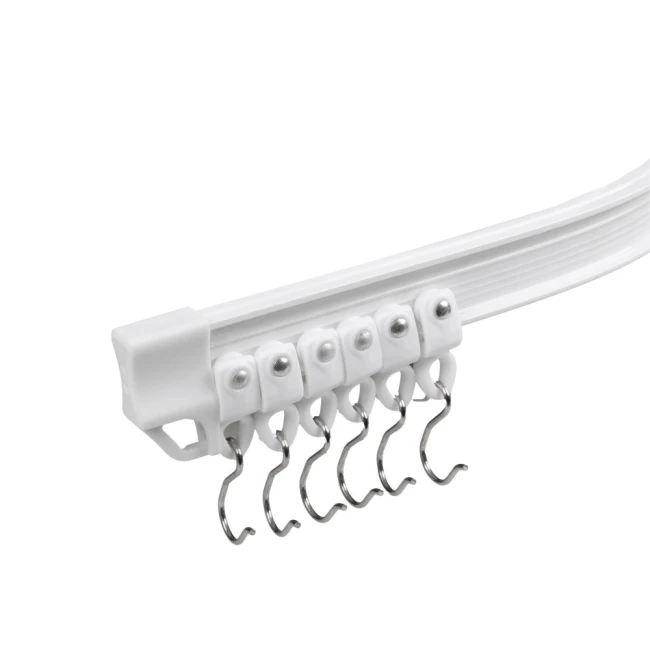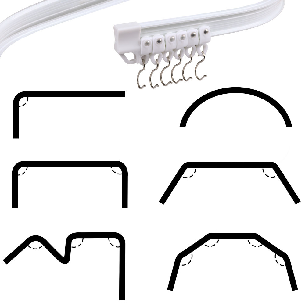 - Flexibilná konštrukcia umožňuje tvarovať záclonovú tyč do akéhokoľvek tvaru (oblúky, ohyby, vlny)