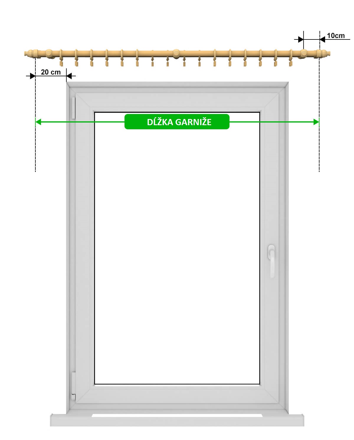 Aby bolo možné zvoliť vhodnú dĺžku garniže, odporúča sa, aby bola tyč širšia ako výklenok okna minimálne o 40 cm (20 cm na každej strane).