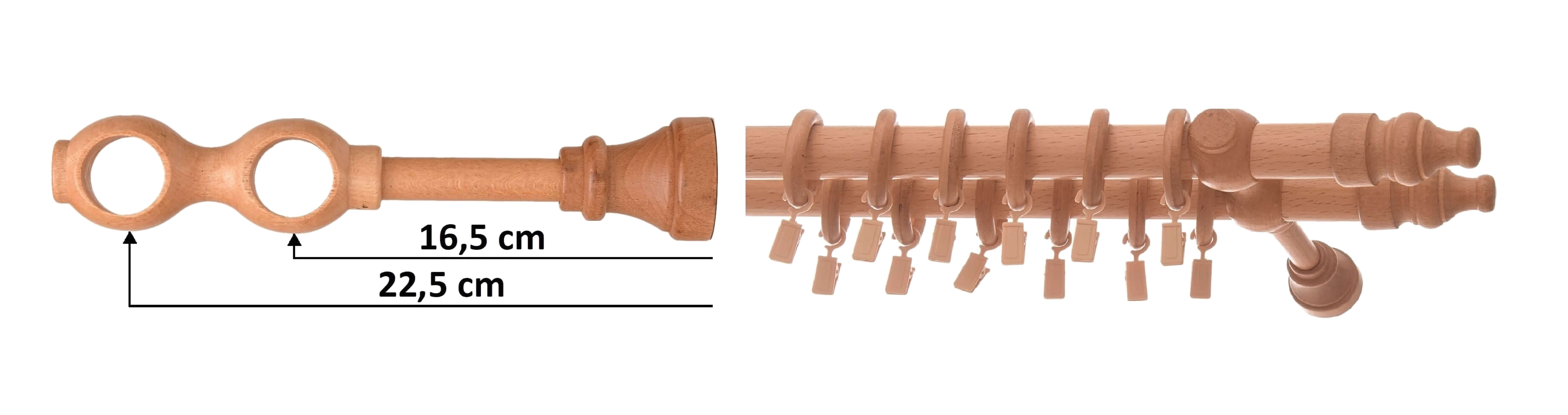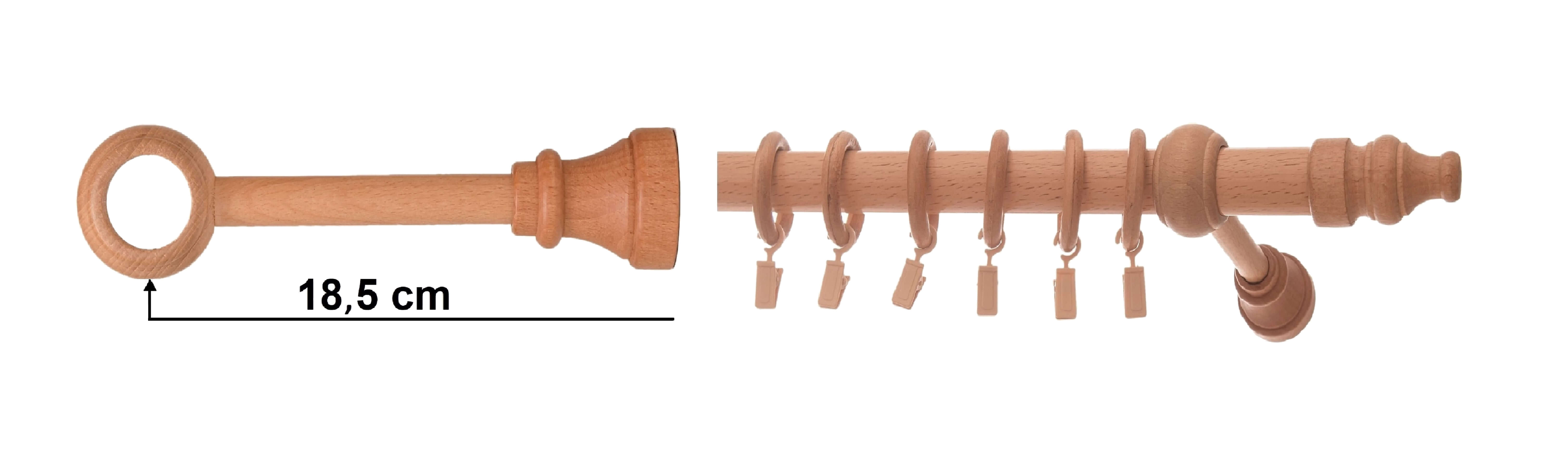 - Drevená tyč s priemerom 28 mm – Garniže o dĺžke až do 250 cm sa dodávajú v celku a garniže dlhšie ako 250 cm sú rozdelené na dve rovnaké časti (napr. záclonová tyč 400 cm sú 2 tyče dlhé 200 cm)