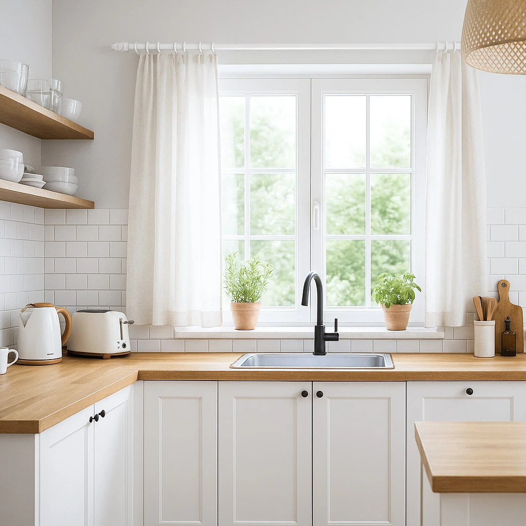 - Použitie kvalitných drevených prvkov pokrytých lakom alebo dyhovanou fóliou (platí pre tyč), ktoré zaisťujú odolnosť proti vlhkosti a poškodeniu