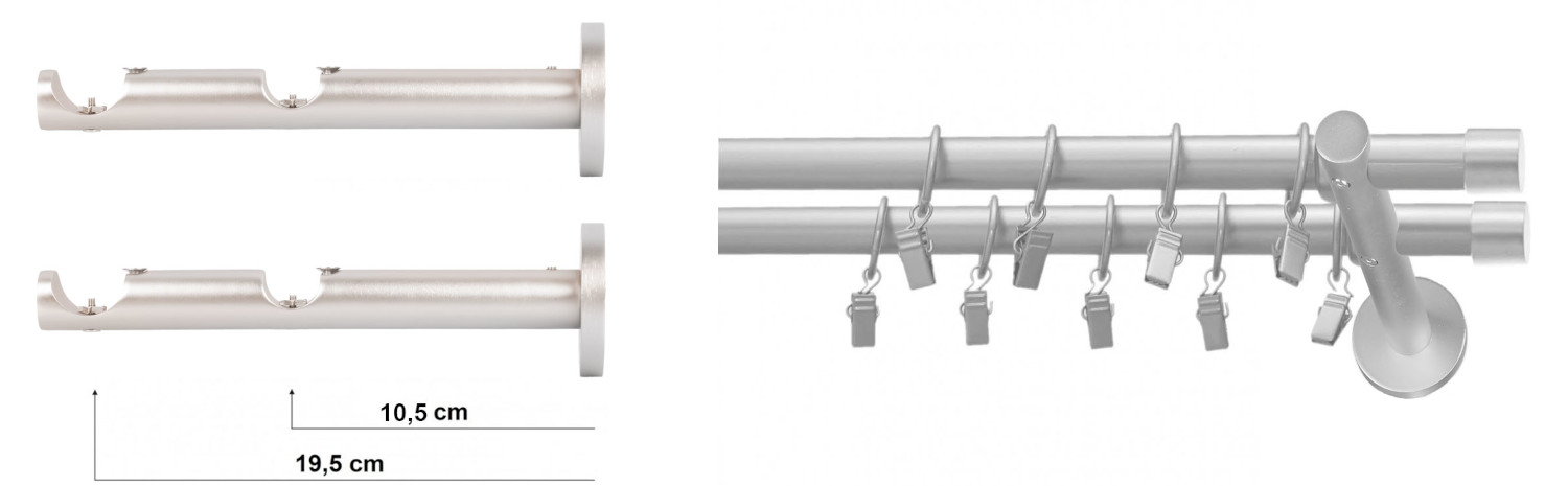 - Dvojité nástenné konzoly (počet konzol v súprave závisí od dĺžky záclonovej tyče: 2 konzoly do 250 cm, 3 konzoly nad 250 cm)