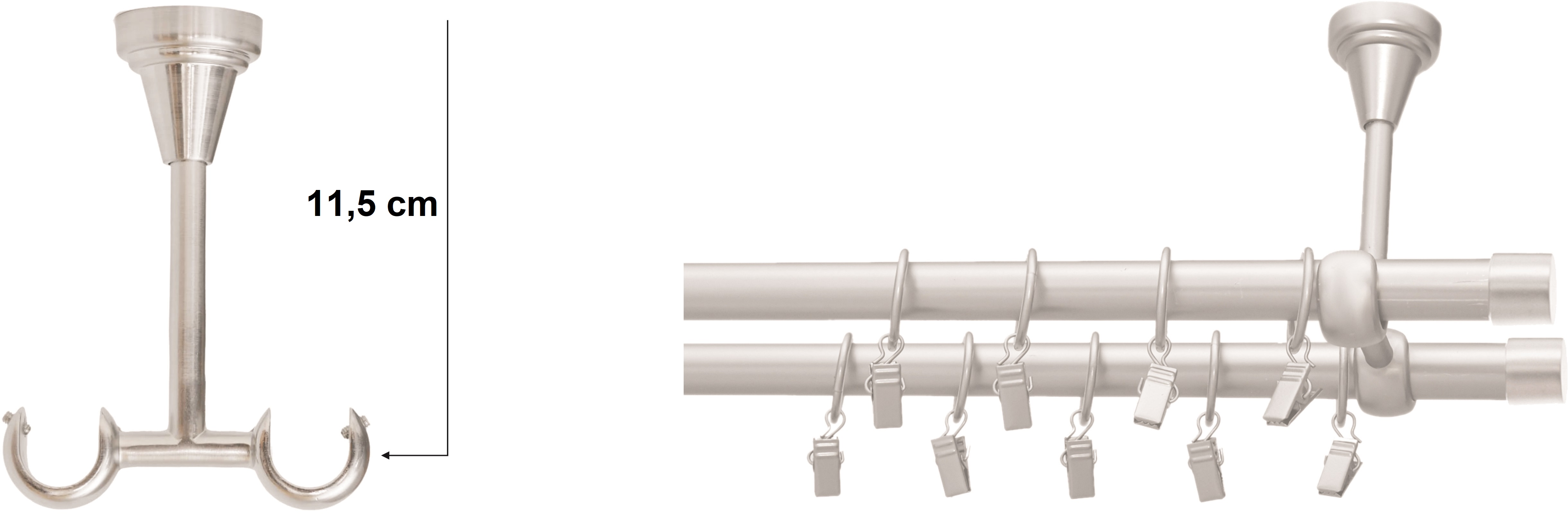 - Dvojité stropné konzoly (počet konzol v súprave závisí od dĺžky záclonovej tyče: 2 konzoly do 250 cm, 3 konzoly nad 250 cm)