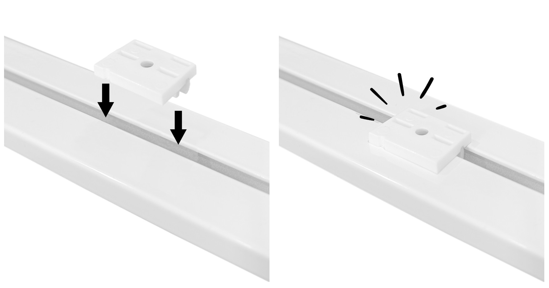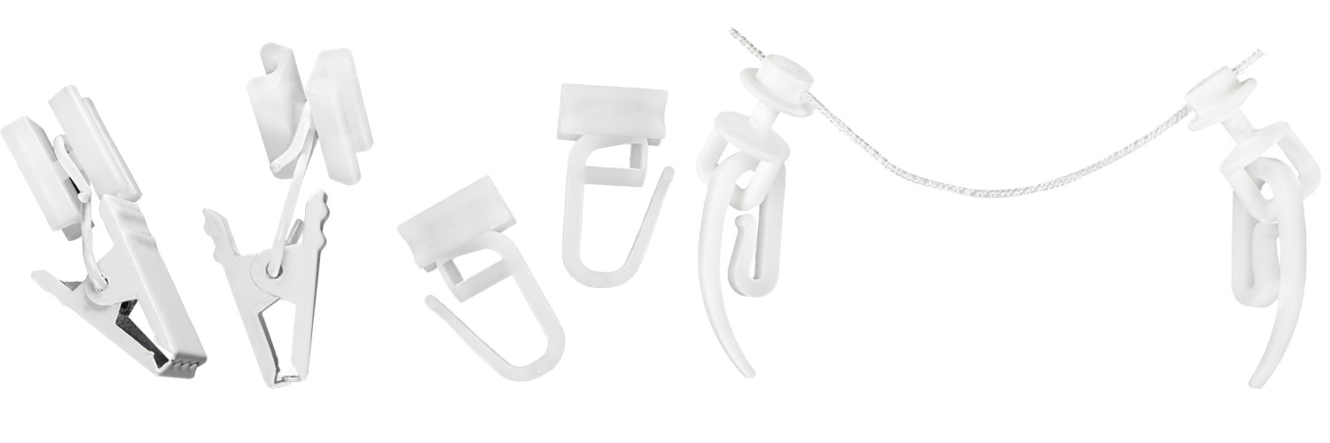Určenie: priamo na uchytenie k riasiacej páske všitej do závesu. Vhodné pre pásku Wave.