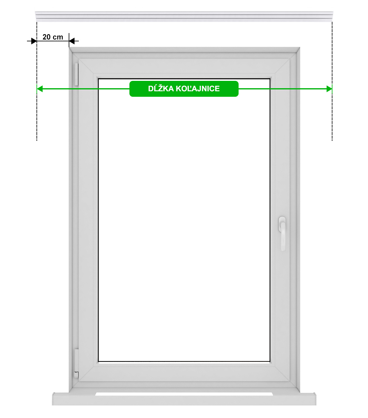 Pre výber vhodnej dĺžky koľajnice sa odporúča, aby bola širšia ako okenný výklenok aspoň o 40 cm (20 cm na každej strane).