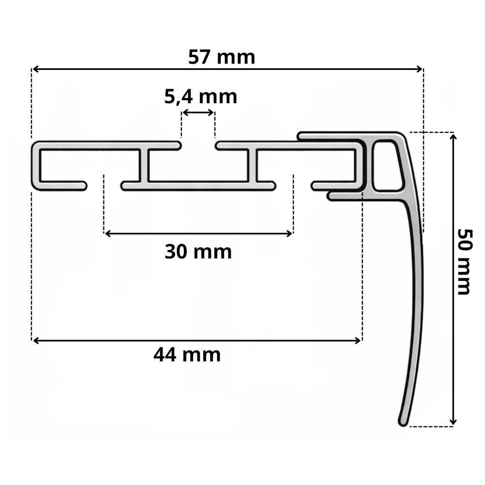 - Vyrobené z kvalitného hliníka , ktorý zaisťuje nielen pevnosť konštrukcie, ale aj odolnosť voči mechanickému poškodeniu. Vďaka tomu si naša hliníková dvojkoľajnica zachová svoj pôvodný stav po dlhú dobu , čím sa eliminuje potreba častej výmeny.