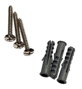 Sada hmoždiniek a skrutiek - v príslušnom množstve v závislosti od dĺžky záclonovej tyče (Hmoždinky a skrutky v sade sú určené na bežné steny. Na sadrokartónové steny je potrebné dokúpiť - Hmoždinky a skrutky do sadrokartónu)