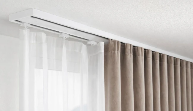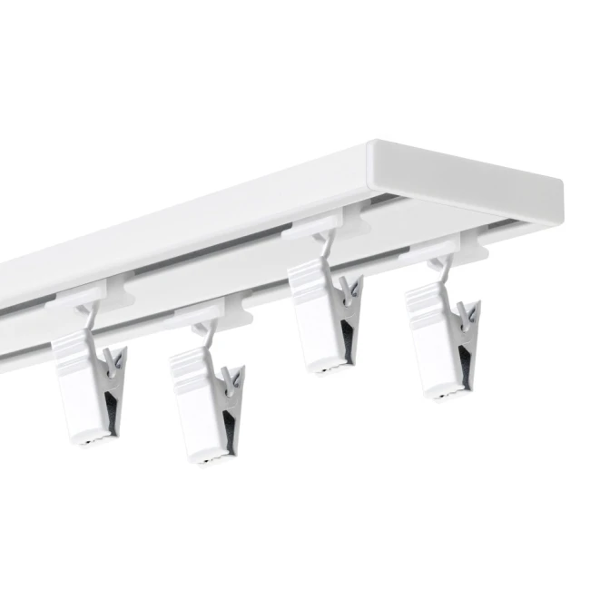 - Hliníková dvojkoľajnica sa vyznačuje nielen svojou estetikou, ale aj praktickosťou. Vďaka plochému dizajnu je takmer neviditeľnáa zameriava pozornosť na samotné okenné dekorácie.