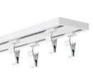 Hliníková lišta DUO (garniže dlhé do 250 cm sa dodávajú v celku a nad 250 cm v častiach, napr. garniža 400 cm sa skladá z 2 koľajničiek o dĺžke 200 cm)
