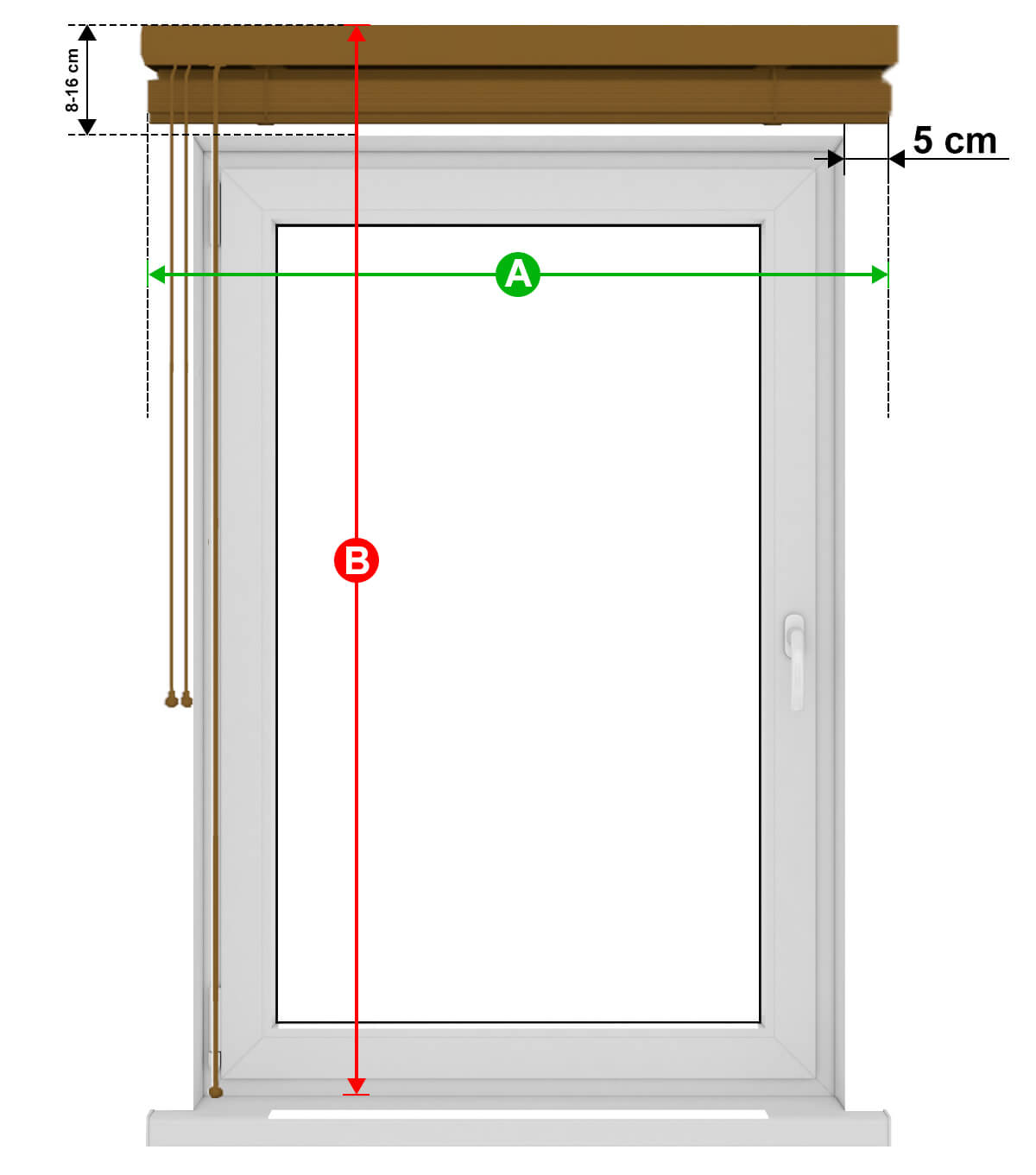 Spôsob merania je veľmi jednoduchý. Zadáte celkovú šírku a celkovú výšku žalúzie (vrátane horného mechanizmu a nosníka). Tu sú návrhy: