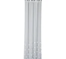 Hotová záclona vyrobená z bielej etaminy s jemnou, drobnou štruktúrou, zakončená olovenou páskou v spodnej časti. Zdobená efektnými striebornými mašľami s trblietavými kamienkami. Jemné zdobenie jej dodáva výnimočný charakter.