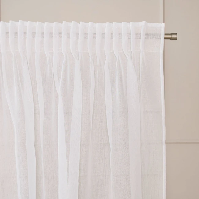 - Záclona má všitú riasiacu pásku, vďaka ktorej je možné ju zavesiť na žabky a háčiky