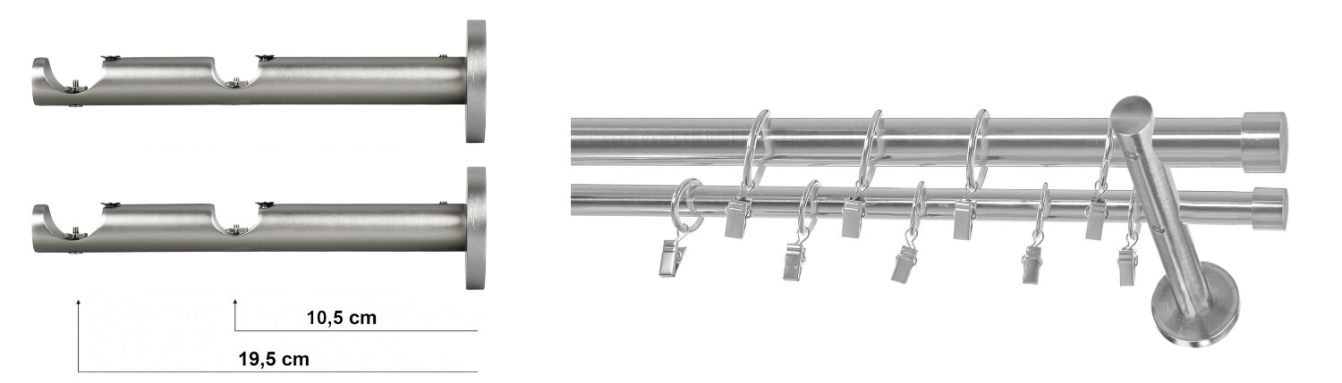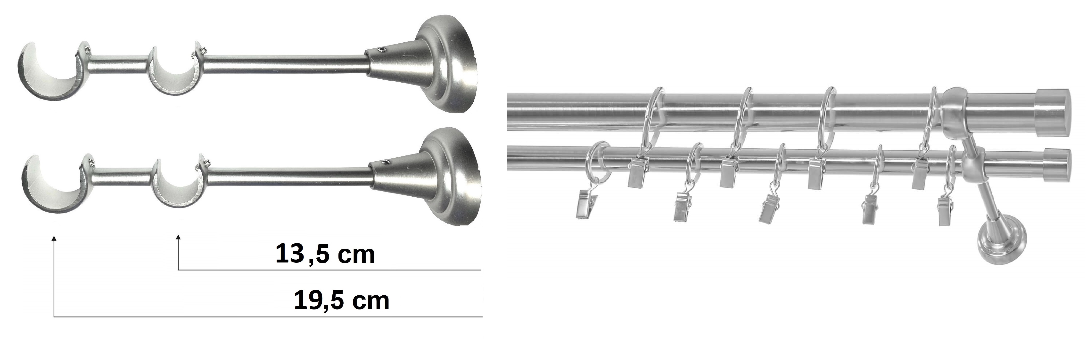 - Dvojité nástenné konzoly (počet konzol v súprave závisí od dĺžky záclonovej tyče: 2 konzoly do 250 cm, 3 konzoly nad 250 cm)