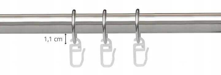 Vzdialenosť hornej časti háčika od tyče je 1,1 cm.