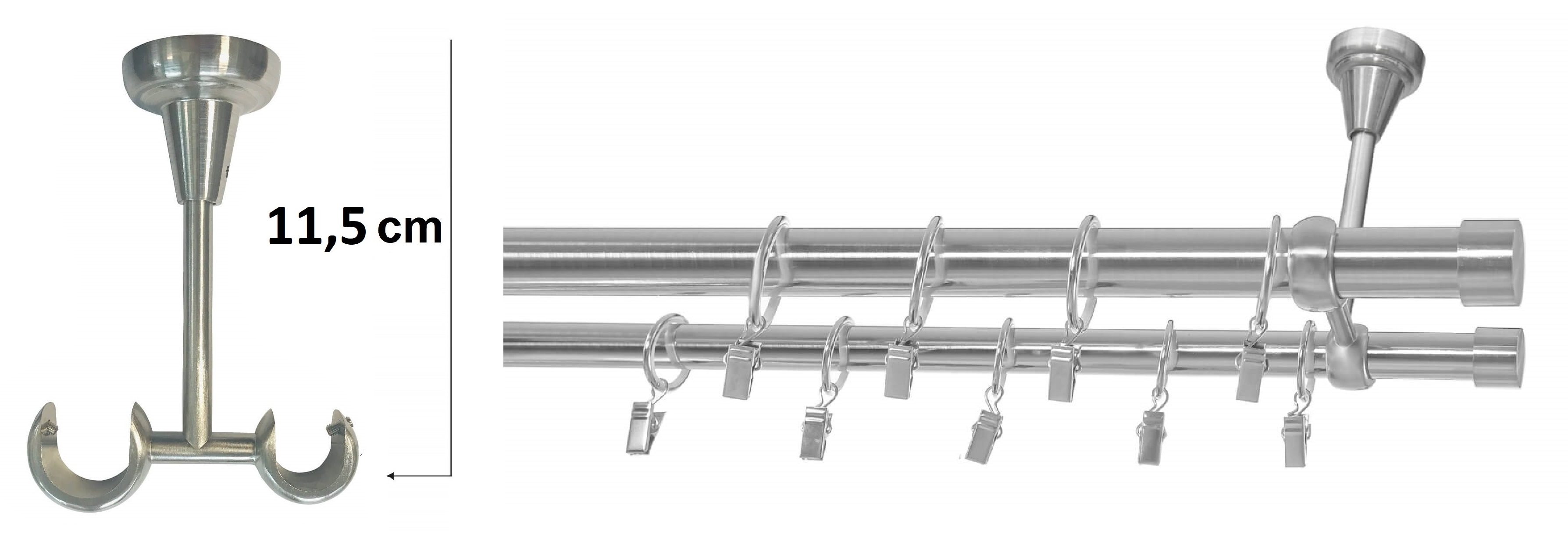 - Dvojité stropné konzoly (počet konzol v súprave závisí od dĺžky záclonovej tyče: 2 konzoly do 250 cm, 3 konzoly nad 250 cm)