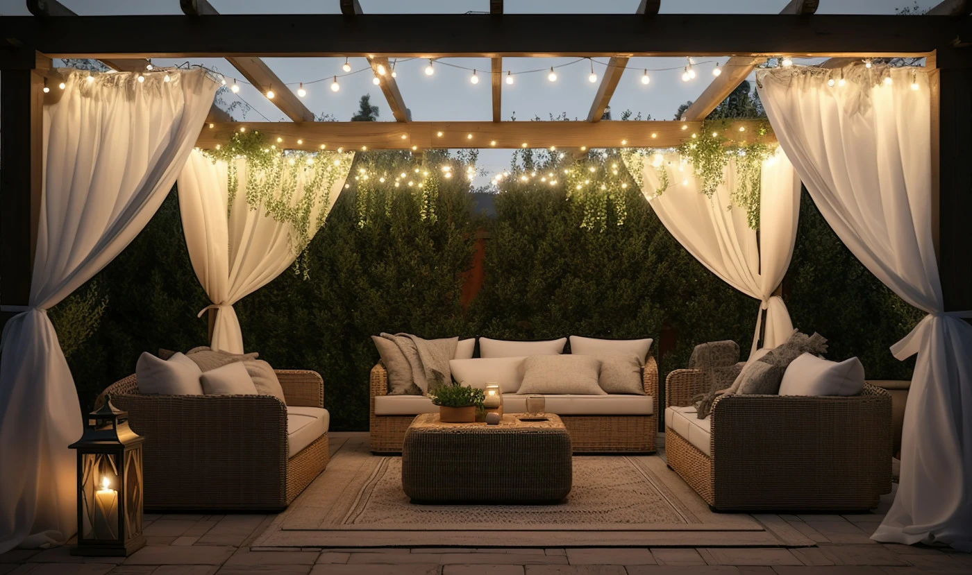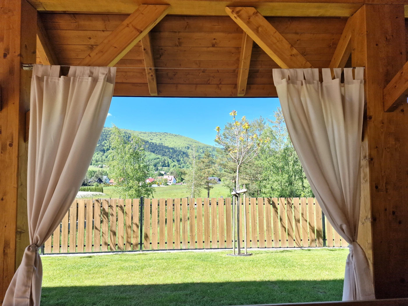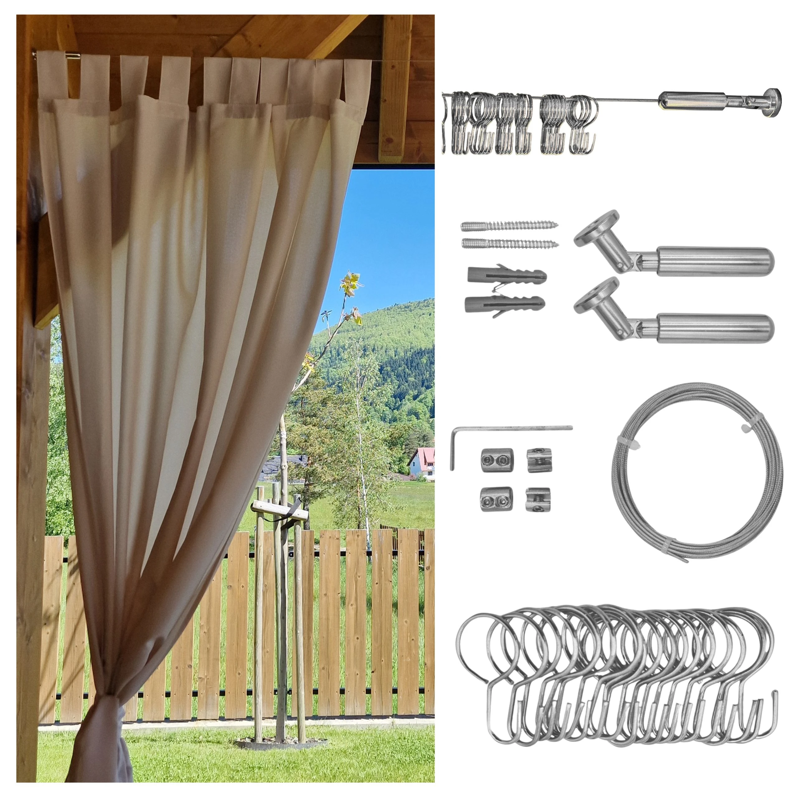 - Lanová záclonová tyč je praktickým riešením pre inštaláciu na zastrešených terasách a v altánkoch umožňujúce jednoduché zavesenie záclon, závesov a terasových girland