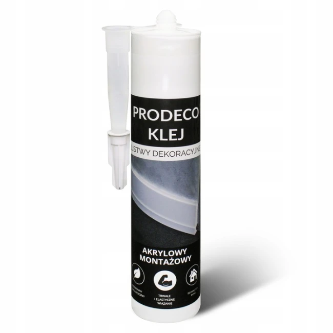 Upozornenie: lepidlo PRODECO nie je kontaktné lepidlo – čas vytvrdzovania je predĺžený, preto sa pri montáži stropných líšt odporúča ich podoprenie až do vytvrdnutia lepidla.