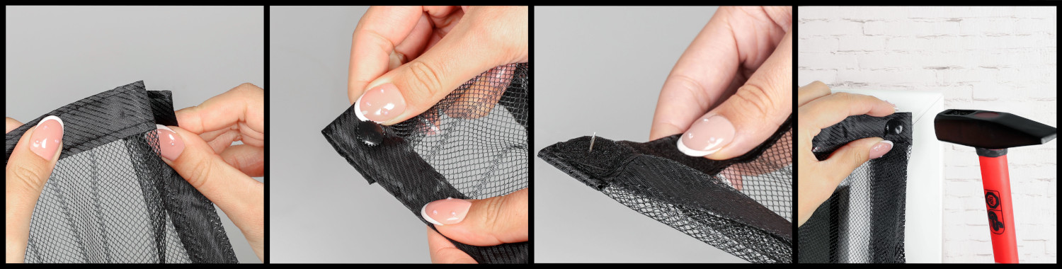 3. Pripojte sieť proti komárom: na predtým pripevnený suchý zips, prilepte moskytiéru a stlačte.