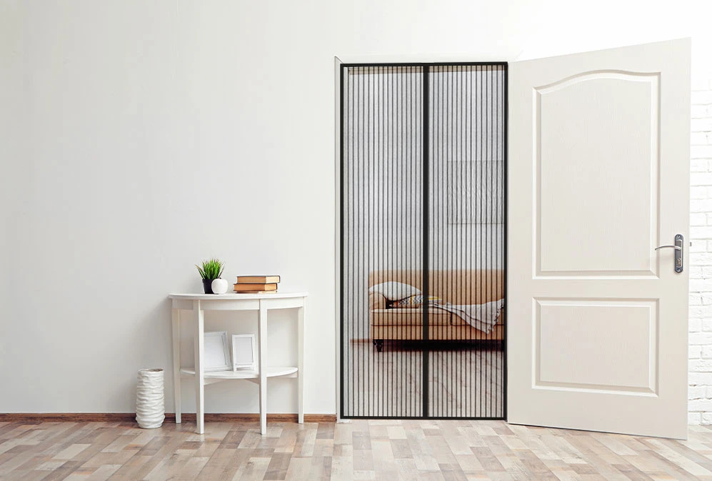 - Estetický vzhľad: Vďaka jednoduchému a elegantnému dizajnu sa moskytiéra perfektne hodí ku každému typu dverí.