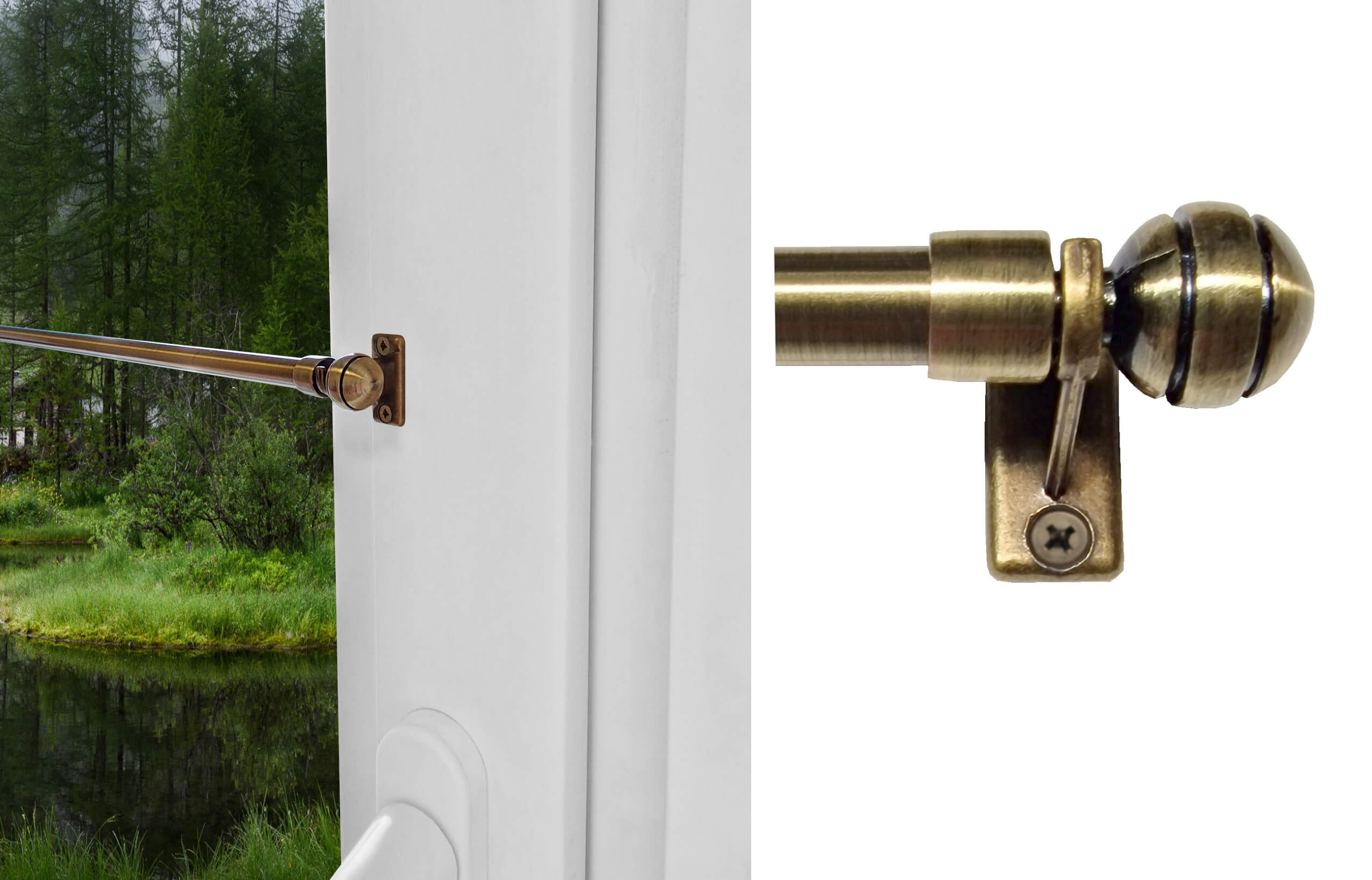 - Záclonová tyč sa priskrutkuje k oknu pomocou špeciálnych držiakov a skrutiek (súčasťou balenia)