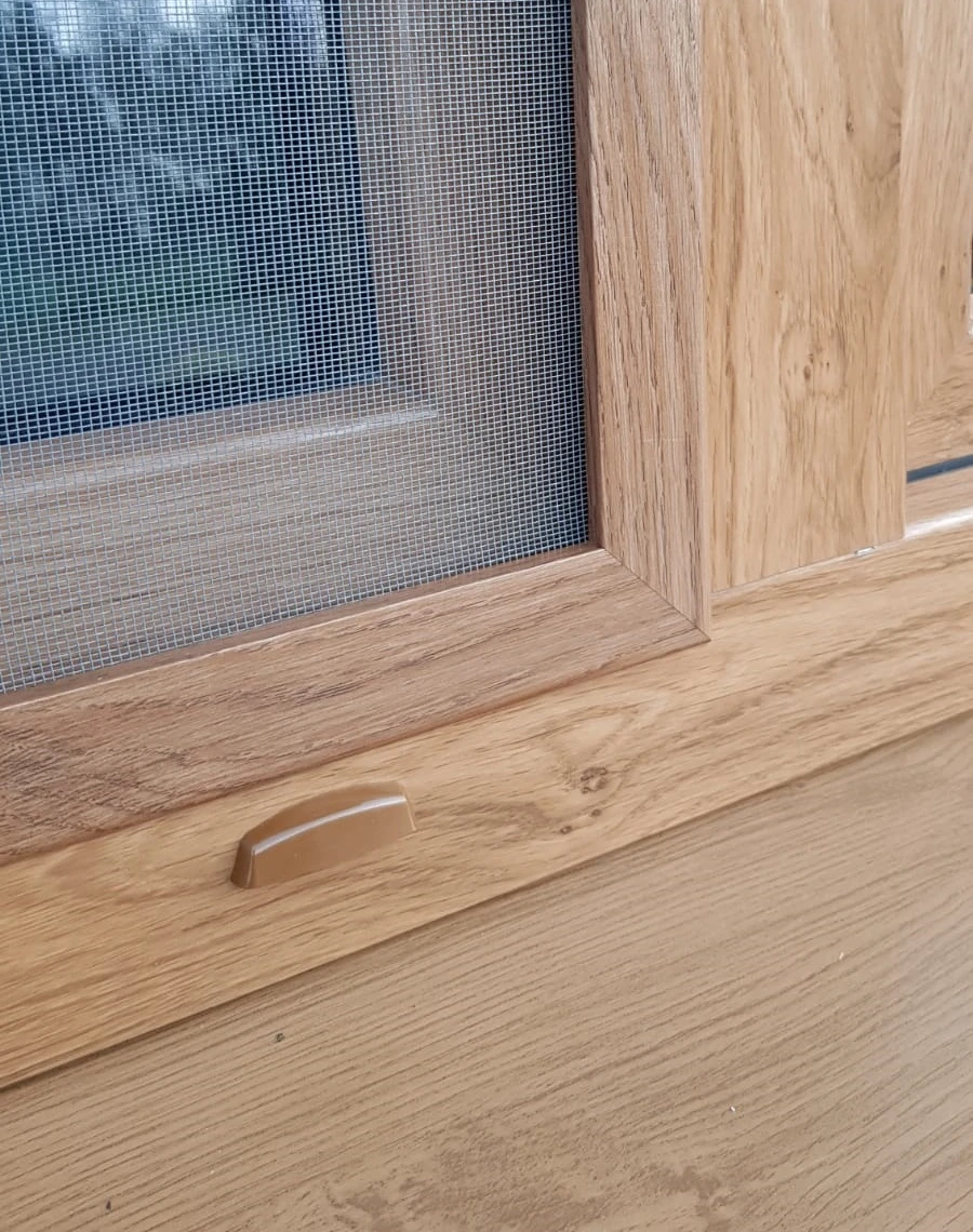 Na oknách s odkvapničkami a vetracími klapkami nie je možné namontovať okennú sieť proti hmyzu.