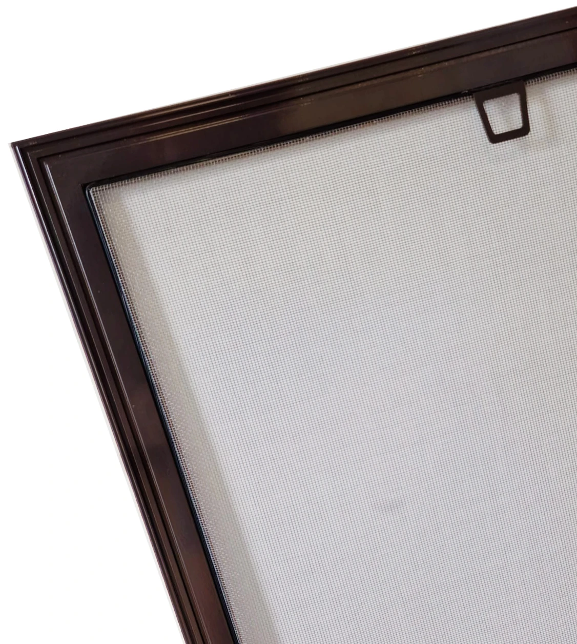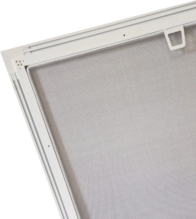 - Rám moskytiéry je vyrobený zo špeciálne lisovaného hliníka, čo zvyšuje jeho pevnosť a tuhosť (aj pri veľkých rozmeroch) a odolnosť voči poveternostným podmienkam