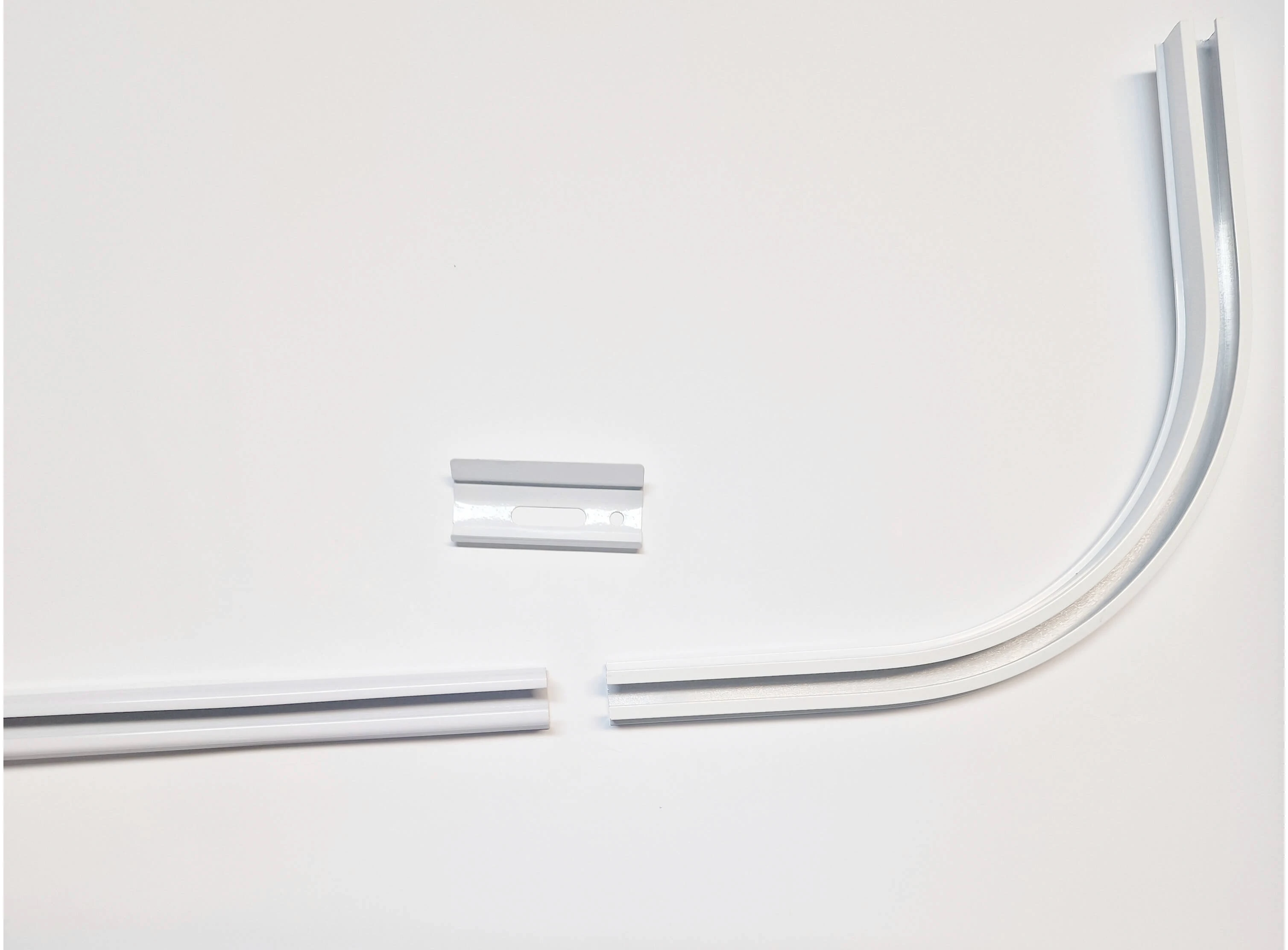 - Oblúk je určený pre hliníkovú koľajnicu. Nehodí sa na PVC koľajnicu