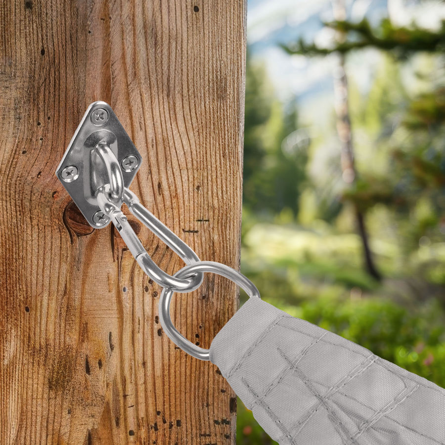- Karabíny zaisťujú, že plachta je trvalo pripevnená na jednom mieste na druhých koncoch