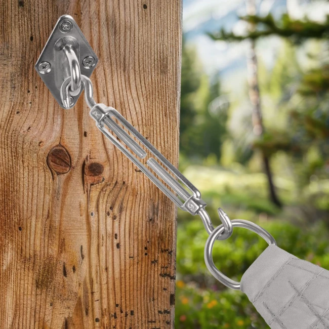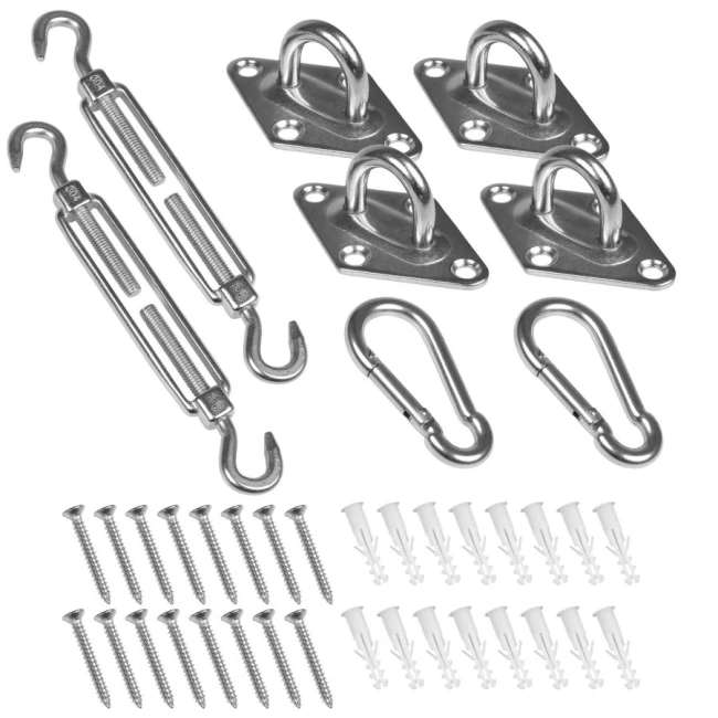- Kompletná sada príslušenstva pre montáž terasovej plachty, ktorá poskytuje jednoduchý a rýchly spôsob montáže plachty v záhrade a na terase