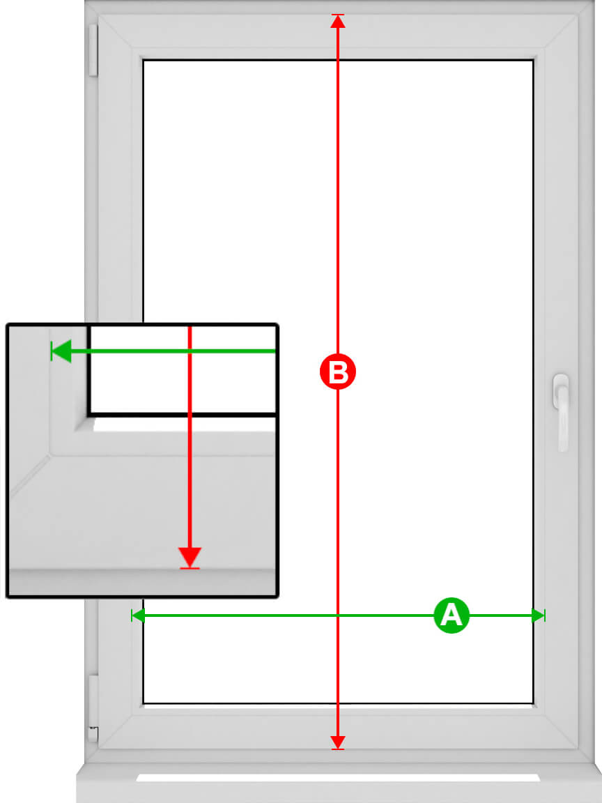 Spolu so zasklievacími lištami zmeriate šírku skla. V prípade že nemáte zasklievacie lišty, zmeriate iba šírku skla