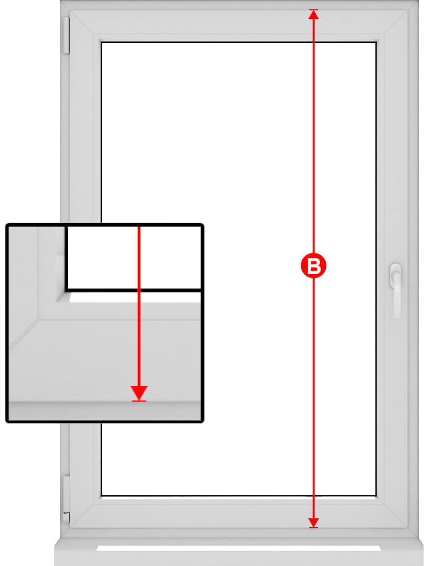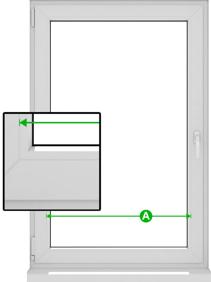 Šírka plisé ''A'' je šírka skla spolu so zasklievacími lištami.