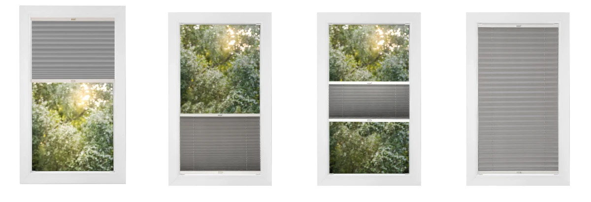 Príklady možností zakrytia okna/dverí: hore, dole, v strede, celé.