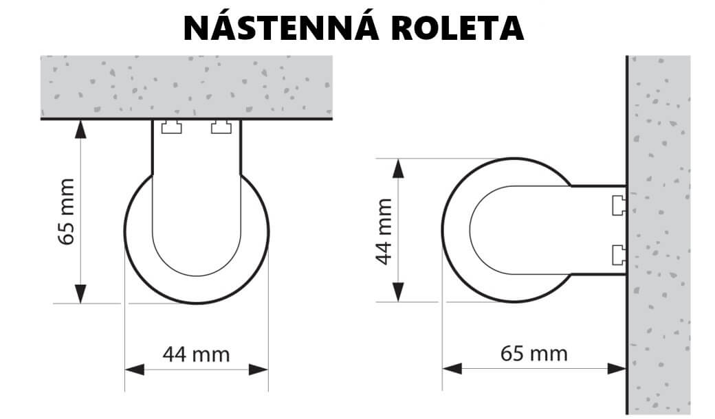• Nástenná roleta je namontovaná na stenu alebo strop, vďaka čomu umožňuje zakryť celé okno alebo iné veľké plochy