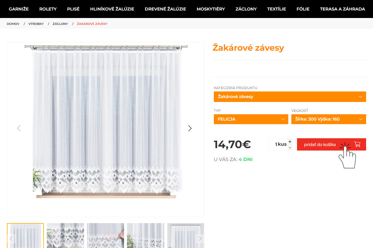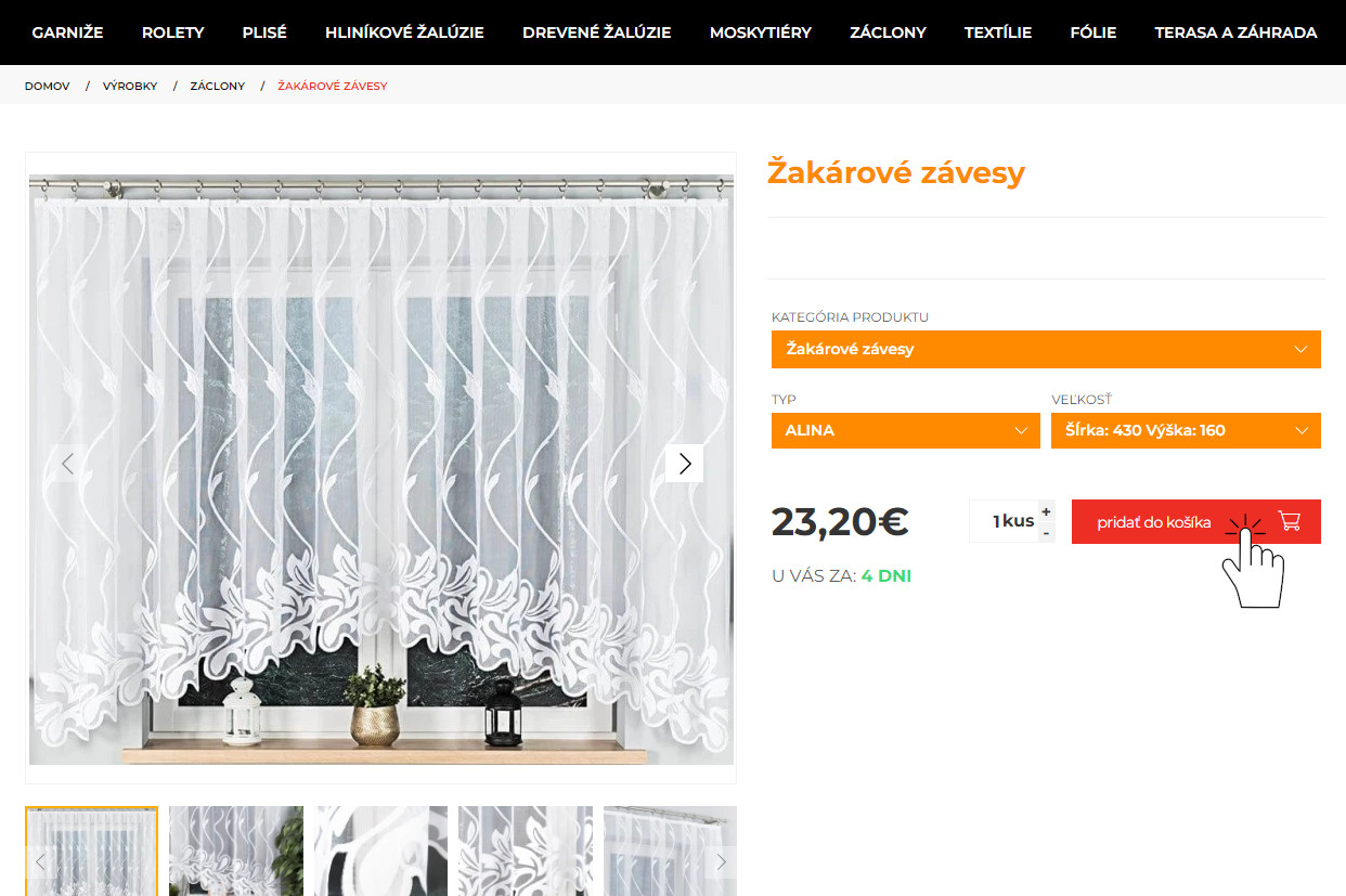 1. Pridajte do košíka žakárové závesy, ku ktorým chcete, aby sme vám ušili riasiacu pásku.