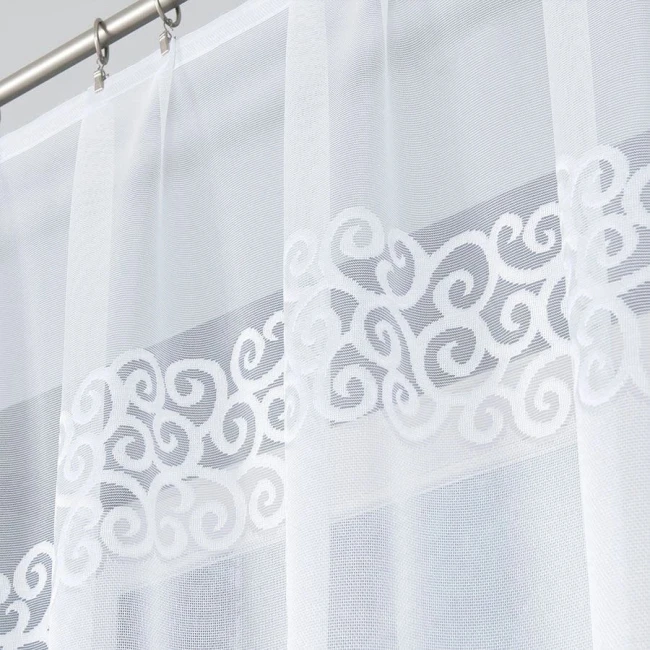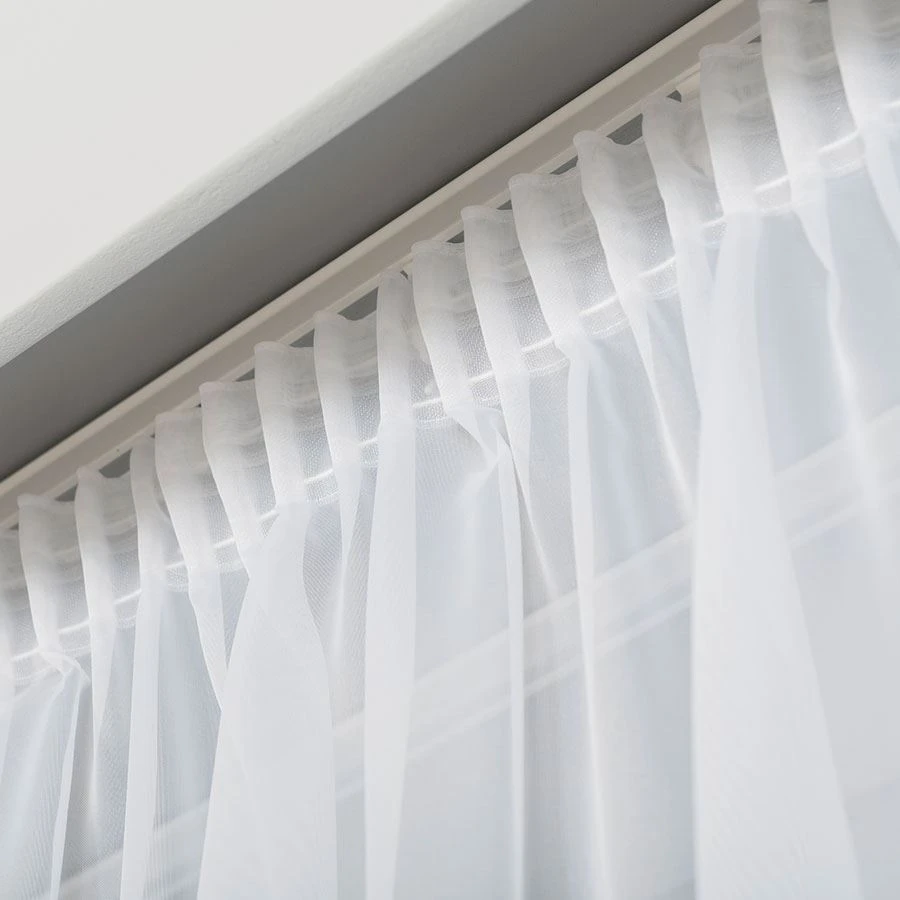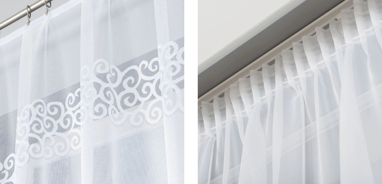 Nariasená páska po prišití spevňuje materiál záclony, vďaka čomu si zachová dokonalý vzhľad po celé roky.