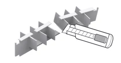 Konektor by mal byť zrezaný samostatne na jednodrážkové a dvojdrážkové koľajničky, zatiaľ čo do trojdrážkovej koľajničky sa namontuje v celosti: