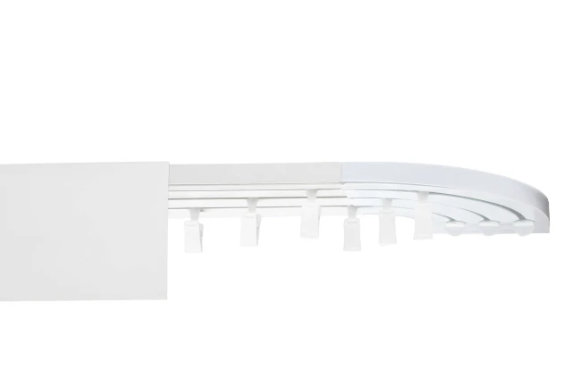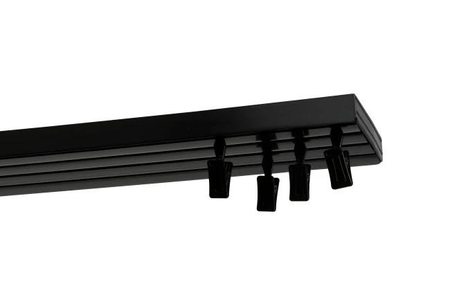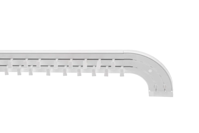 - Používa sa na spojenie dvoch stropných koľajničiek a zaisťuje veľmi hladký pohyb žabiek / háčikov a je neviditeľný, čo vytvára dojem jednej garniže