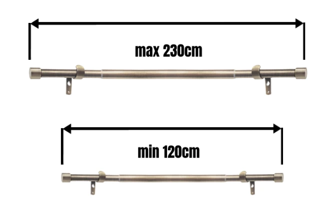 - Teleskopické nastavenie umožňuje nastaviť dĺžku záclonovej tyče