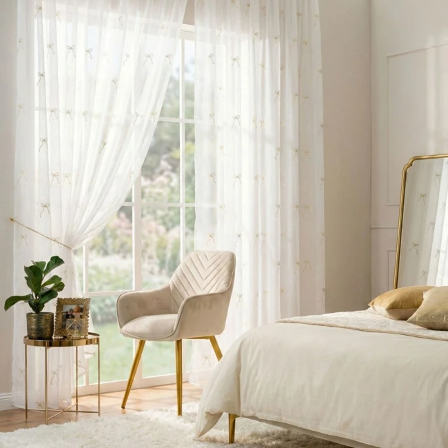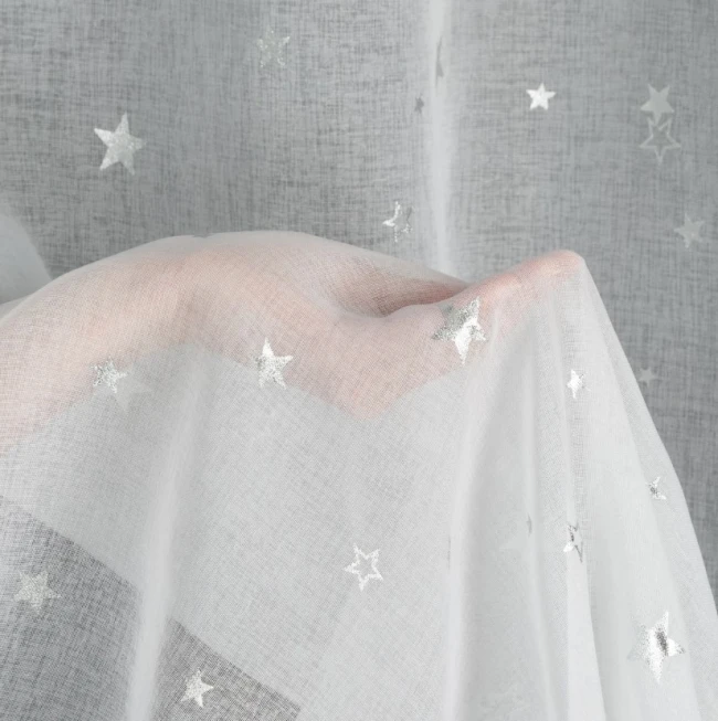 - Hladký voálový materiál je látka, ktorá sa najčastejšie volí na závesy v obývačke, izbe alebo spálni, kde dodáva interiéru ľahkosť a eleganciu, umožňuje súkromie a zároveň prepúšťa do miestnosti primerané množstvo denného svetla.