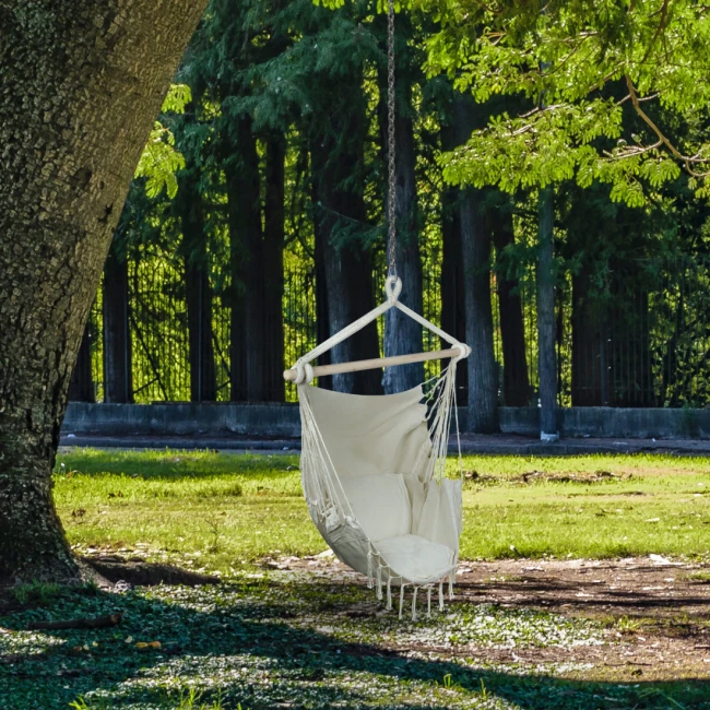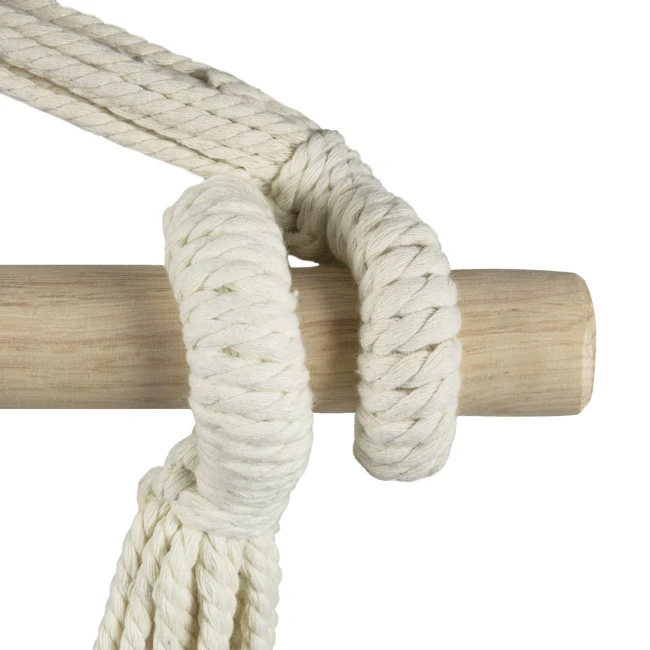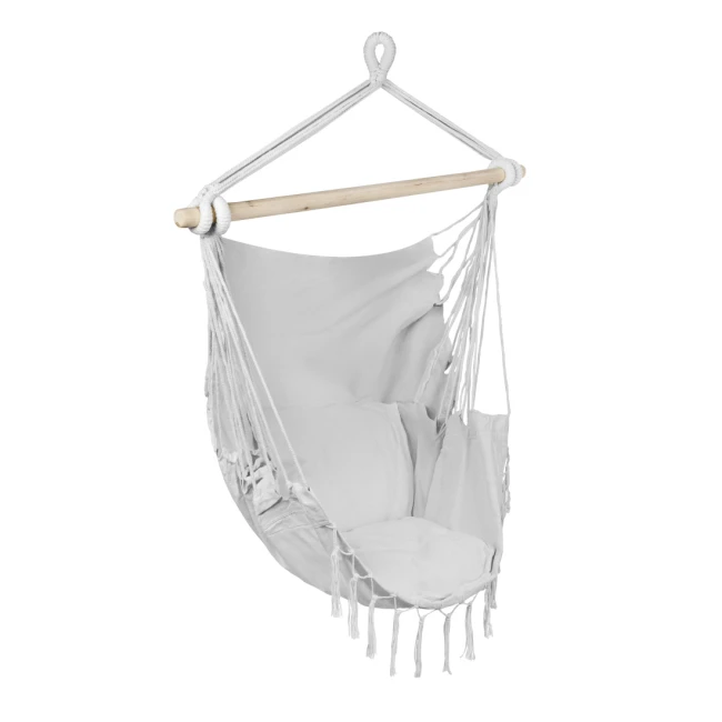 - Kreslo je vybavené pevnými pletenými šnúrami, ktoré zaisťujú stabilitu a odolnosť. Môžete si užívať relaxáciu s istotou s vedomím, že konštrukcia je pevná