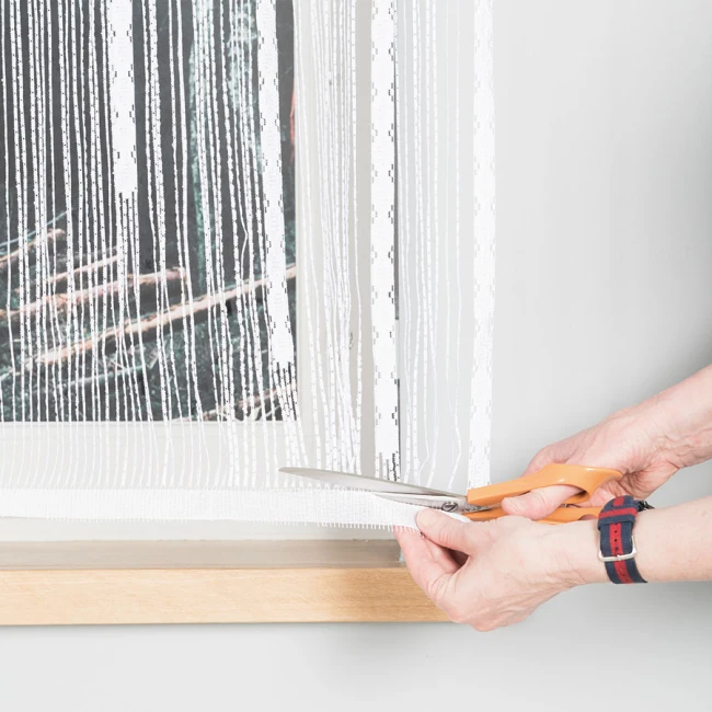 - Výškovo sa dá upraviť odstrihnutím spodnej časti závesu - okraje sa nestrapkajú.